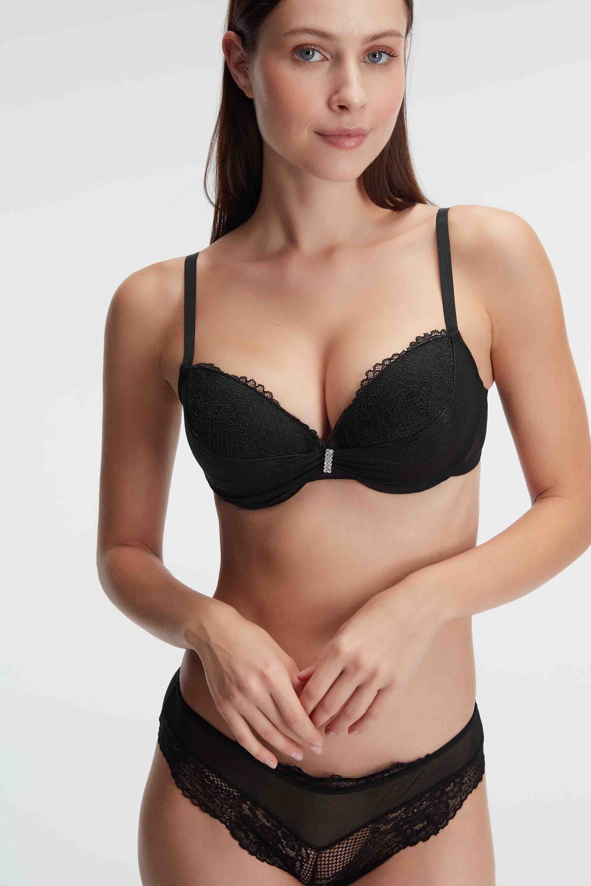 Anıl Kadın Balenli Destekli Dolgulu Taşlı Dantelli Sütyen ve Slip Takım (4825)Anıl markası, zarafeti ve konforu mükemmel bir şekilde harmanlayarak iç giyim dünyasında kendine sağlam bir yer edinmiştir. Kadın Balenli Destekli Dolgulu Taşlı Dantelli Sütyen ve Slip Takım (4825), her kadının iç giyim koleksiyonuna şıklık katacak ve kendilerini özel hissetmelerini sağlayacak bir tasarımdır. Zarif taş detayları, şık dantel işlemeleri ve destekleyici yapıdaki sütyen ile bu takım, rahatlık ve estetiği bir arada sunar. Hem günlük kullanım hem de özel günler için mükemmel bir seçenek olan bu takım, kadınların kendilerini hem rahat hem de şık hissetmelerini sağlar.Ürün Özellikleri:Sütyen:Balenli Destek: Sütyenin içinde yer alan balenler, göğüsleri mükemmel bir şekilde destekler, daha dik ve düzgün bir görünüm sağlar. Balenli yapı, sütyenin vücuda tam oturmasını sağlar ve göğüsleri doğru şekilde destekler. Bu özellik, günlük kullanımda ekstra rahatlık ve güven sunar.Dolgulu Yapı: Sütyenin dolgulu tasarımı, göğüsleri hafifçe büyüterek daha dolgun ve doğal bir görünüm elde edilmesini sağlar. Dolgulu sütyen, vücut hatlarınızı belirginleştirirken, aynı zamanda daha simetrik bir duruş yaratır. Bu, özellikle göğüslerde hacim isteyenler için ideal bir seçenektir.Taşlı Detaylar: Sütyenin ön kısmında yer alan zarif taş detayları, takıma şıklık katarken, aynı zamanda zarif bir ışıltı ve sofistike bir hava yaratır. Taşlar, takımın genel tasarımına zarif bir dokunuş katarak, her kadının iç giyiminde şıklığını ön plana çıkarır. Bu taş detayları, gece davetlerinde veya özel anlarda parlamak isteyenler için mükemmel bir dokunuş sağlar.Dantel İşlemeleri: Sütyenin etrafında yer alan dantel işlemeleri, romantik bir atmosfer yaratırken, şıklığı artırır. Dantel, sütyenin üzerine zarif bir şekilde işlenmiş ve vücudu saran bu tasarım, hem estetik hem de zarif bir görünüm sağlar. Dantel detayları, vücuda oturur ve doğal güzellikleri ön plana çıkarır.Ayarlanabilir Askılar: Sütyenin askıları, vücuda rahatça uyum sağlaması için ayarlanabilir özelliktedir. Bu, kadınların kişisel rahatlıklarına göre askıları en uygun şekilde ayarlamalarına olanak tanır. Ayarlanabilir askılar, ekstra rahatlık ve uyum sağlar.Slip:Şık Tasarım: Slip, sütyenin tasarımıyla uyumlu şekilde zarif bir kesime sahiptir. Vücudu zarif bir şekilde sararak, estetik bir görünüm sağlar. Slip''in tasarımı, hem şık hem de modern bir yapıya sahiptir ve takımın tüm şıklığını vurgular.Dantel Detayları: Slip’in etrafında yer alan dantel işlemeleri, sütyenin tasarımıyla mükemmel bir uyum içindedir. Bu detaylar, takımı zarif kılar ve ona romantik bir hava katarken, aynı zamanda vücut hatlarını düzgün bir şekilde sarar.Taşlı Süslemeler: Slip’in ön kısmında da sütyende olduğu gibi taşlı detaylar yer alır. Bu taşlar, slip’e şık bir ışıltı ekler ve tüm takımın zarafetini pekiştirir. Slip’in taşlı süslemeleri, takımın elegan bir görünüm kazanmasını sağlar.Esnek ve Rahat Kumaş: Slip, esnek ve yumuşak kumaşıyla son derece rahat bir kullanım sunar. Esnek yapısı, vücuda rahatça oturur ve tüm gün boyunca rahatlıkla kullanılabilir. Kumaş, cildi tahriş etmeden ve rahatlıkla hareket etmenize olanak tanır.Kullanım Alanları:Günlük Kullanım: Kadın Balenli Destekli Dolgulu Taşlı Dantelli Sütyen ve Slip Takım (4825), günlük kullanımda rahatlıkla tercih edilebilecek bir iç giyim takımıdır. Şıklığından ödün vermeyen bu takım, hem rahatlığı hem de estetiği ile günlük aktivitelerde size özgüven kazandırır.Özel Günler ve Davetler: Takımın taşlı detayları, özel davetler ve gece organizasyonları için mükemmel bir tercihtir. Zarif taş süslemeleri, takıma ışıltı katarak, sizi gece boyunca parlatır. Aynı zamanda dantel işlemeleri, romantik bir hava yaratarak, gece boyunca şıklığınızı tamamlar.Romantik Anlar: Bu takım, romantik akşam yemekleri veya özel anlar için de ideal bir tercihtir. Taşlı süslemeler ve dantel detayları, romantik bir atmosfer yaratırken, aynı zamanda şıklığınızı vurgular.