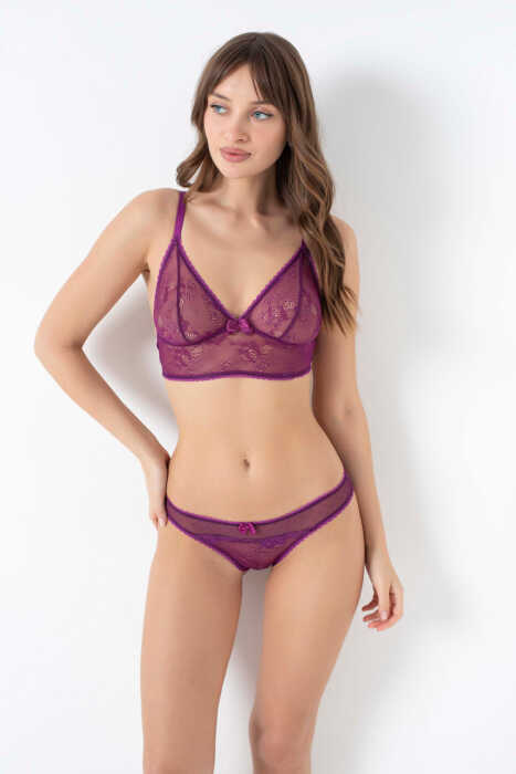 Kısa Ad:Kadın Balensiz Desteksiz Dolgusuz Dantelli Bralet Sütyen ve Slip Takım (4209)