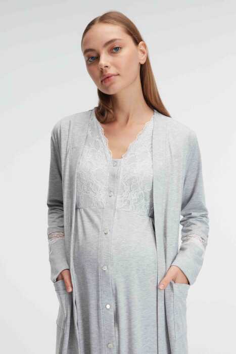 Anıl 11309 Kalın Askılı V Yaka Kadın Yazlık Dantel Detaylı Hamile Gecelik SabahlıkYaz aylarının rahatlığını ve şıklığını bir arada sunan bu hamile gecelik sabahlık, Anıl markasının zarif ve konforlu tasarımlarından biri olarak öne çıkıyor. Hem şıklığı hem de fonksiyonelliği ile hem gündüz hem de gece kullanıma uygun olan bu ürün, özellikle hamilelik dönemindeki kadınlar için idealdir.Öne Çıkan Özellikler:Kalın Askılar: Ürün, vücuda tam oturan, ayarlanabilir kalın askılarla tasarlanmıştır. Bu özellik, hamilelik sürecinde artan göğüs hassasiyetini rahatça taşımanıza yardımcı olur. Askılar, aynı zamanda daha fazla destek sağlayarak şıklığınızı da tamamlar.V Yaka Tasarım: Derin V yaka kesimi, şıklığınızı artırırken rahat bir giyim deneyimi sunar. Hem gece boyunca rahat uyumanızı sağlar hem de hamilelik sürecindeki değişen vücut hatlarınıza uyum gösterir.Yazlık Kumaş: Yazlık dantel detayları ve hafif, yumuşak kumaşı ile sıcak havalarda da ferah bir kullanım imkânı sunar. İdeal yaz gecelik sabahlığı arayan kadınlar için mükemmel bir tercihtir. Kumaşın nefes alabilir yapısı sayesinde vücut sıcaklığınız dengelenir.Dantel Detaylar: Geceliğin ön kısmında zarif dantel detayları yer alır. Bu ince işçilik, ürünün elegan bir hava kazanmasını sağlar. Dantel, sadece görsel olarak şık bir dokunuş sunmakla kalmaz, aynı zamanda hamileliğinizin her aşamasında rahat hareket etmenize olanak tanır.Beden Uyumu: Anıl 11309 modelinin tasarımı, hamilelik sürecindeki vücut değişimlerine uyum sağlayacak şekilde geniş bir bedene oturur. Elastik yapısı sayesinde her vücut tipine rahatça uyum sağlar, ekstra rahatlık sunar.Çok Amaçlı Kullanım: Hem gündüz saatlerinde rahat bir ev kıyafeti olarak, hem de gece yatmadan önce kullanabileceğiniz şık ve rahat bir uyku elbisesi olarak tercih edebilirsiniz. Aynı zamanda sabahlık olarak da kullanabileceğiniz bu ürün, hem evdeki rahat anlarınızı hem de dışarıya çıkacağınız kısa süreli ziyaretleri şık bir şekilde karşılar.Şıklık ve Konforun Bir Arada: Anıl 11309 Kalın Askılı V Yaka Hamile Gecelik Sabahlık, şıklığı ve konforu birleştiren zarif tasarımı ile kadınları mutlu eder. Gün boyu süren rahatlık, geceleri ise huzurlu bir uyku sağlar. İçerik Bilgisi: %60 POLYESTER %35 VISCOSE %8 EA