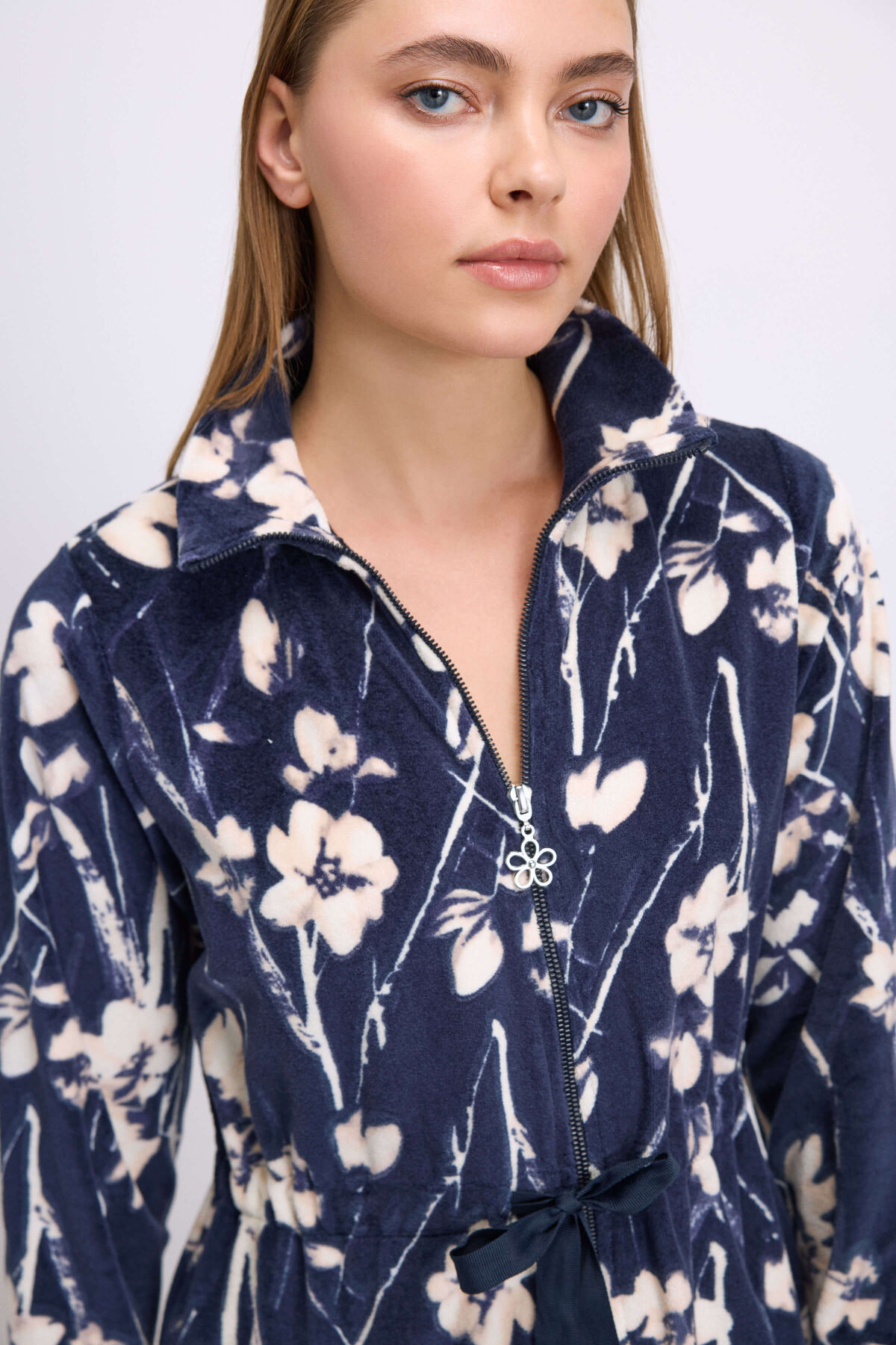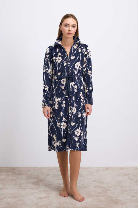 Anil 11537 Kadın Sabahlık, zarafet ve konforu aynı anda sunan şık bir ev giyim parçasıdır. Kadife (velour) kumaşın yumuşacık dokusu, teninizde sıcak ve lüks bir his bırakırken, çiçek desenli tasarımıyla feminen bir görünüm kazandırır.Yüksek yakası, sabahlığa modern bir duruş katarken soğuk günlerde boyun bölgesini sıcak tutar. Bel kısmındaki uyumlu renkli kuşak detayı ise vücut hatlarını zarifçe vurgular ve konforlu bir kullanım sağlar.Kumaş içeriği %80 pamuk ve %20 polyesterden oluşur. Pamuk lifleri cilt dostu bir yapı sunarken, polyester katkısı sabahlığın formunu korumasına ve uzun süre yeni gibi kalmasına yardımcı olur. Velour (kadife) dokusu, hem ışıltılı bir görünüm hem de ekstra yumuşaklık sağlar.Evde rahat vakit geçirmek, sabah kahvaltısında şıklığını korumak veya akşam dinlenme saatlerinde sıcak kalmak isteyen kadınlar için mükemmel bir tercihtir. Kadınsı zarafeti ve kaliteli dokusuyla bu sabahlık, ev giyimi koleksiyonunun vazgeçilmez parçalarından biridir.Ürün Özellikleri:Ürün Kodu: 11537Marka: AnilKumaş İçeriği: %80 Pamuk, %20 Polyester (Velour)Renk: Lacivert – Çiçek DesenliModel: Fermuarlı, Bel Kuşaklı, Uzun Kollu SabahlıkKumaş Tipi: Kadife (Velour)Sezon: Sonbahar / KışKalıp: Rahat kesimKullanım Alanı: Ev giyimi, loungewear, sabahlıkBakım: 30°C’de hassas yıkama, düşük ısıda ütüleme önerilirÖne Çıkanlar:✔ Yumuşacık velour dokusu ile üstün konfor✔ Çiçek desenli kumaşla zarif görünüm✔ Fermuarlı ön kısım ve bel kuşağı ile pratik kullanım✔ Soğuk günlerde sıcak tutan pamuklu kumaş✔ Şık ve kaliteli ev giyimi deneyimi